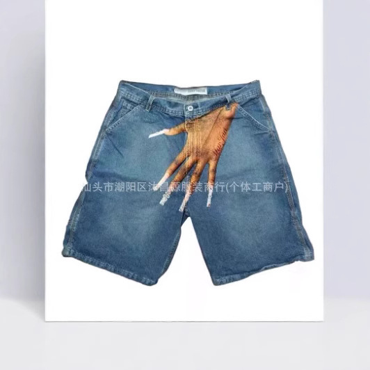 クロスボーダーメーカー直販パーソナライズされたトレンディなカポックプリントデニムショートパンツ日本製ルーズカジュアルストレートパンツ男性用