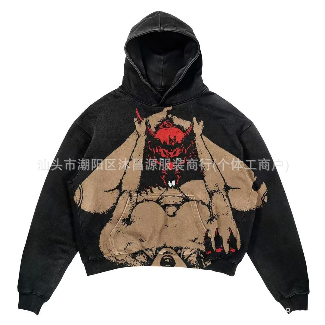 国境を越えた対外貿易のアメリカのレトロな図案のプリントは帽子のシャツの男女のゴシックの個性の街頭のレジャーの頭の上着をかぶせます。