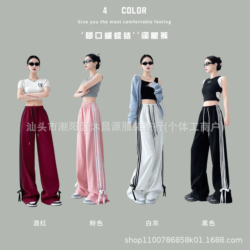 国境を越えた貿易春と秋の新しいスポーツシンプルなストライプのカジュアルパンツ男性と女性のためのルーズデザインのワイドレッグパンツ