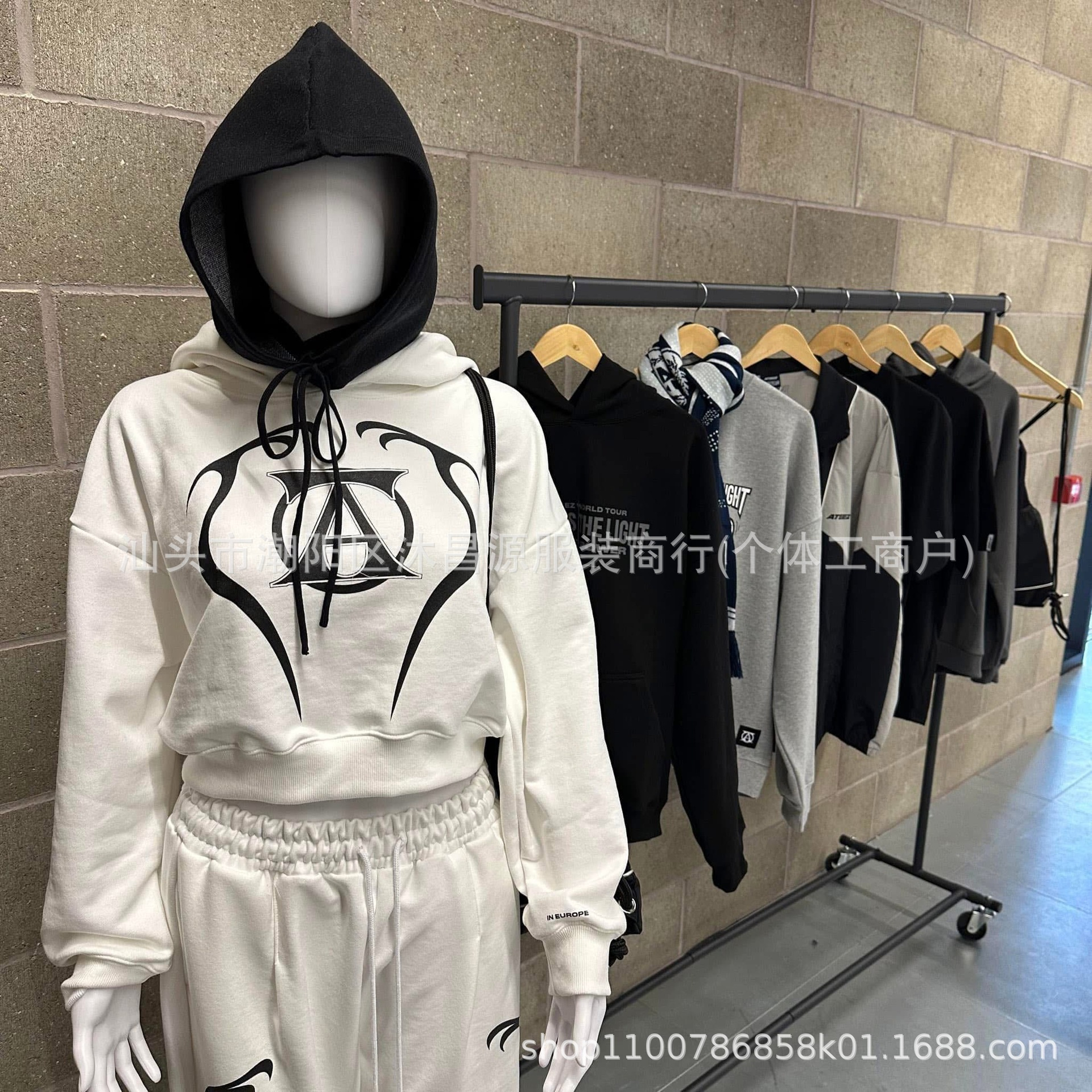 クロスボーダー外国貿易パーソナライズされたストリートパターンレタープリントパーカースーツ男性と女性のためのトレンディなファッション多用途スウェットシャツ