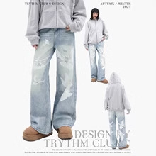 国境を越えた対外貿易アメリカの個性的な街頭ヒップホップ風プリントジーンズの花のストレートなカジュアルなワイド脚のゆるいズボン
