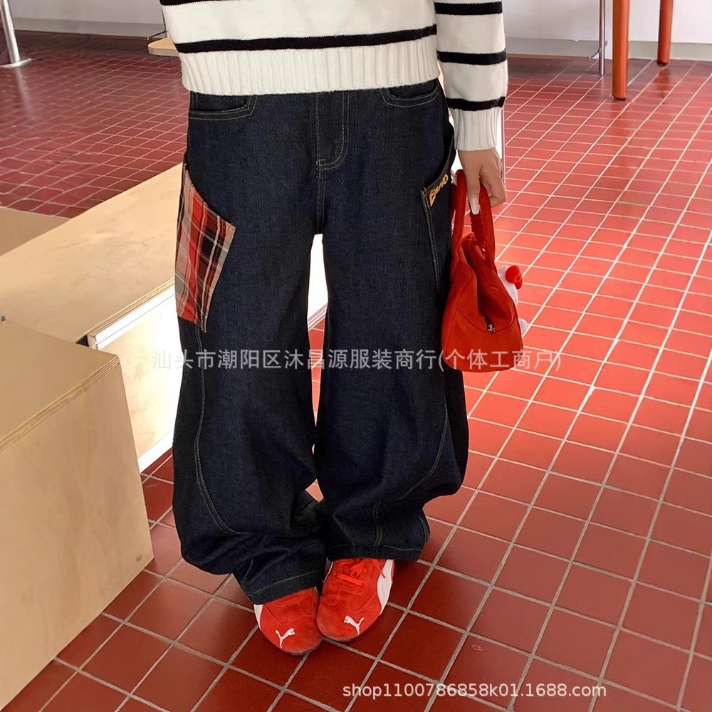 国境を越えた対外貿易2025アメリカのレトロな大衆のデザイン感は格子の曲がり角のジーパンの男女の春と秋をつなぎ合わせます。