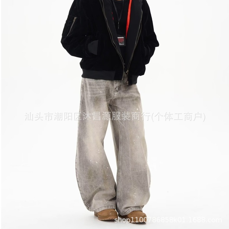 国境を越えた対外貿易2025春秋の新型アメリカのレトロなインクをかけて古い水洗いの刃のジーパンの男女のズボンをします。
