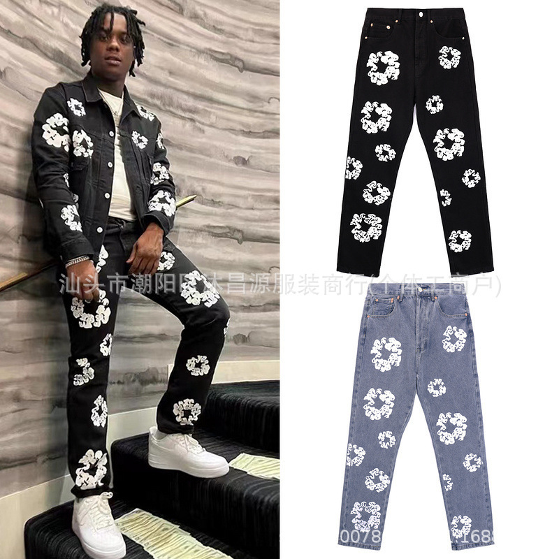 国境を越えた対外貿易アメリカの個性的な街頭ヒップホップ風プリントジーンズの花のストレートなカジュアルなワイド脚のゆるいズボン