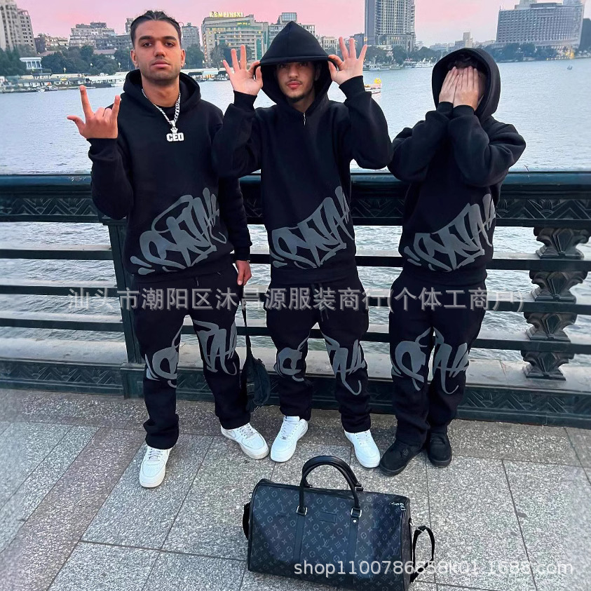 国境を越えた対外貿易ファッションのアメリカの流行のアルファベットのプリントは帽子のシャツの男女の街頭のヒップホップの衛衣のズボンをかぶせます。