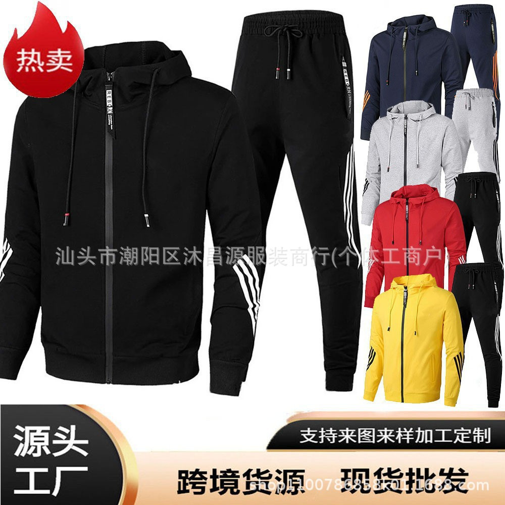 国境を越えた対外貿易春秋の新型カジュアルフードセット男女ファスナースポーツウェア2点セット