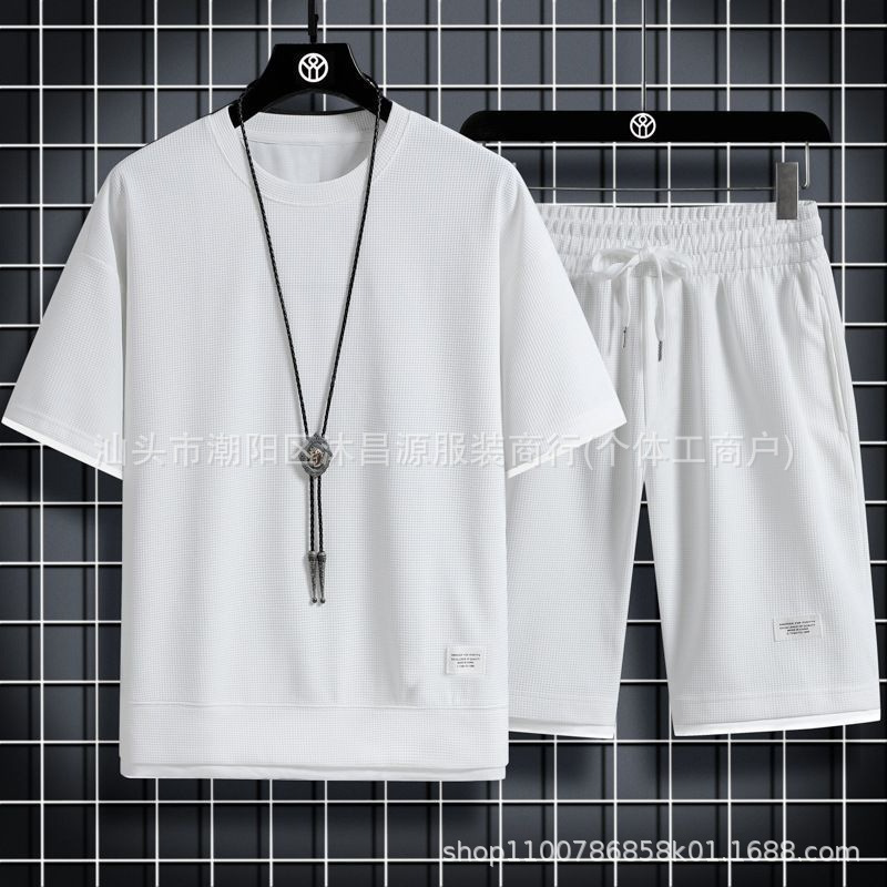 夏の香港風のゆったりした偽の半袖の半ズボンの越境する対外貿易のワッフルのスポーツのレジャーの百合のスーツの男女