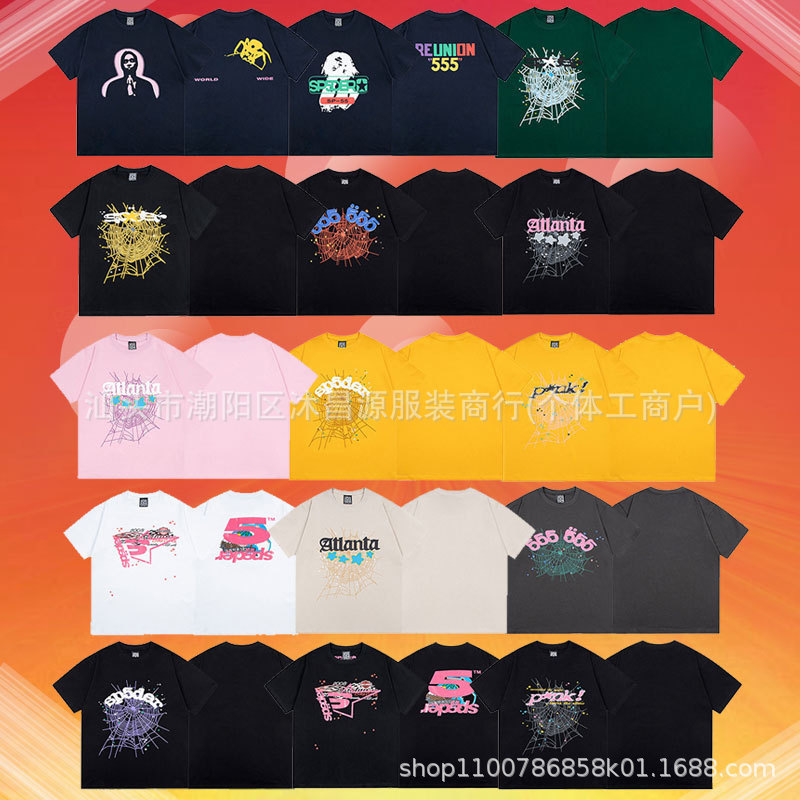 クロスボーダーの外国貿易の個性的な街頭のアルファベットの図案の蜘蛛の巣のプリントの男女のゆったりしているカジュアルな半袖の大衆の潮流