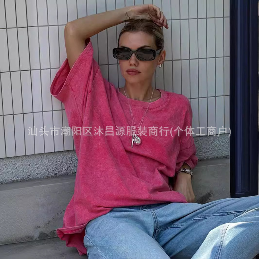国境を越えたメーカー直販の新型半袖欧米2024夏の男女モデルカジュアル丸襟ネット版ゆるいtシャツ