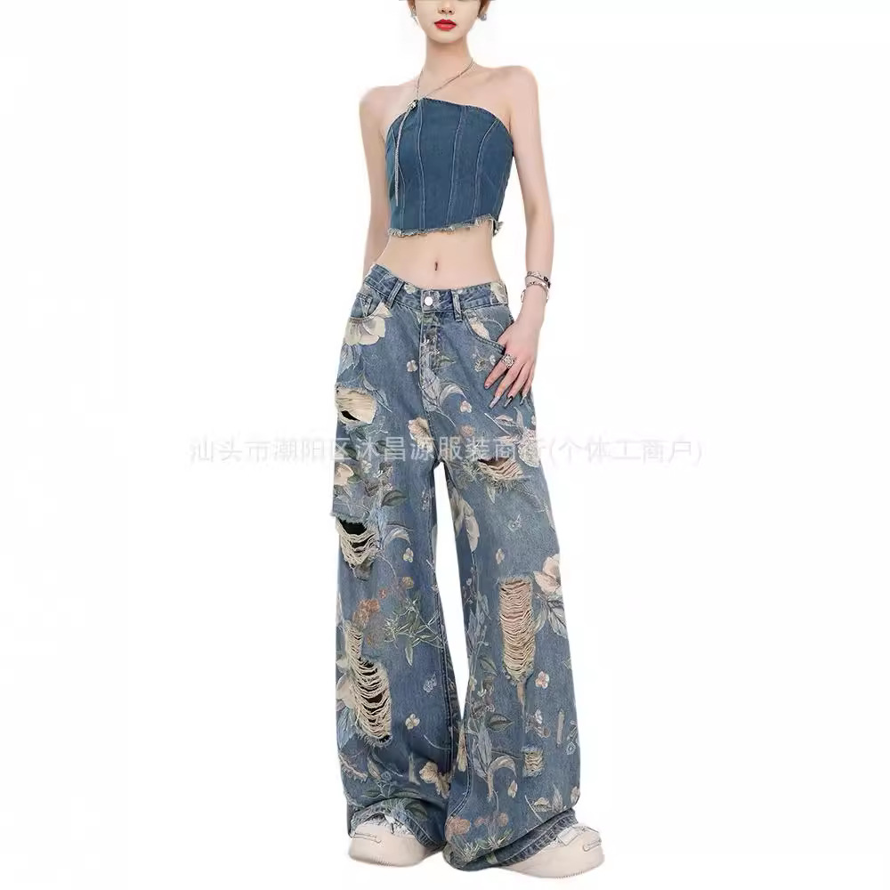 2024夏の新型アメリカンジーンズ男小衆広脚直筒垂感がゆったりとしています。