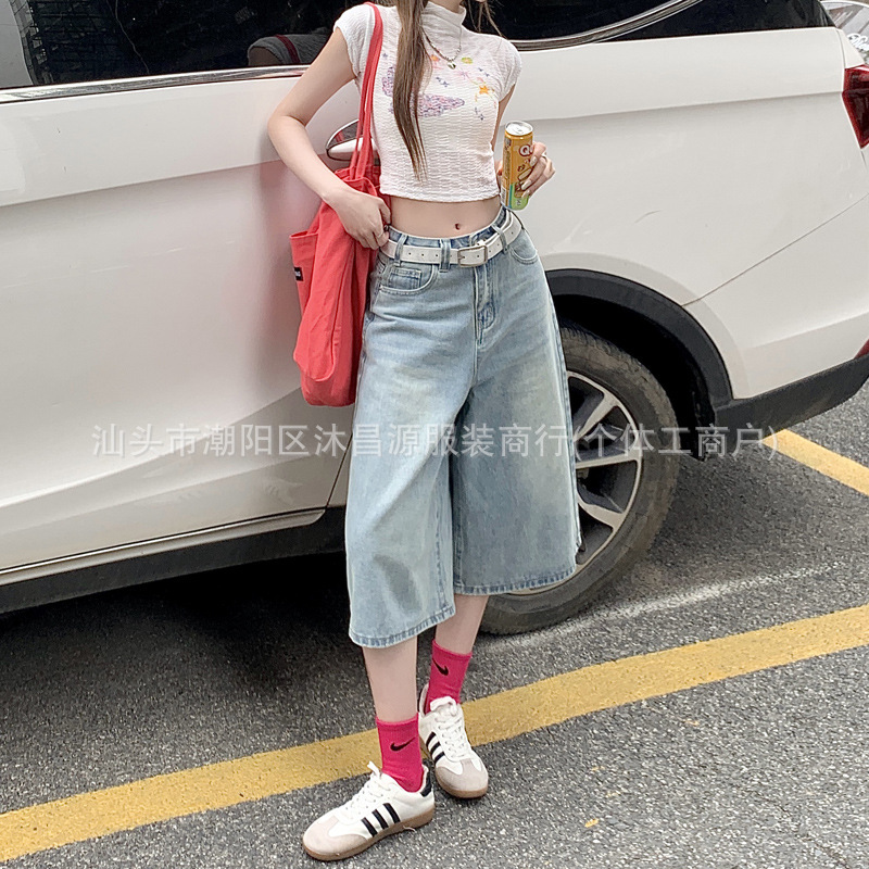 国境を越えたメーカー直販2024新夏秋のゆるい広脚が痩せているストレート七分ズボンのアメリカンパンツ