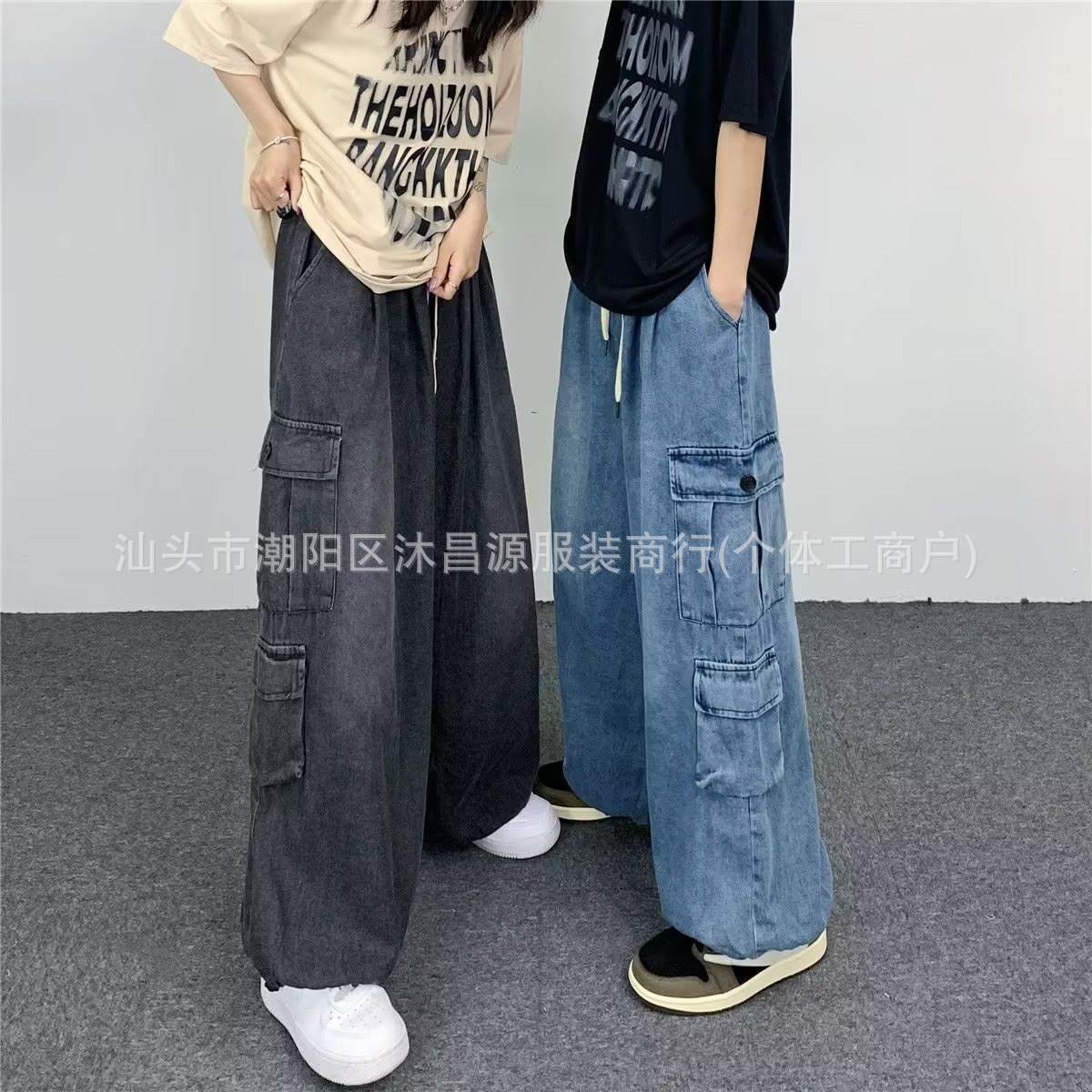 国境を越えたメーカー直販2024夏の新型ウエストひも多ポケット設計工装ジーンズモップ金