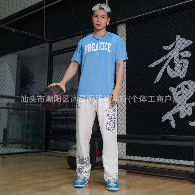 2024新型孟博龍同タイプの衛ズボン欧文同タイプのストレートバスケットボールの長ズボン男性のアメリカ式トレーニング運動長ズボン