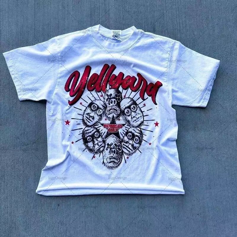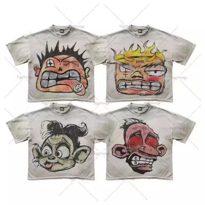 街頭ヒップホップメンズtシャツY2K綿男原宿大きな目口柄プリント超定番半袖トップス