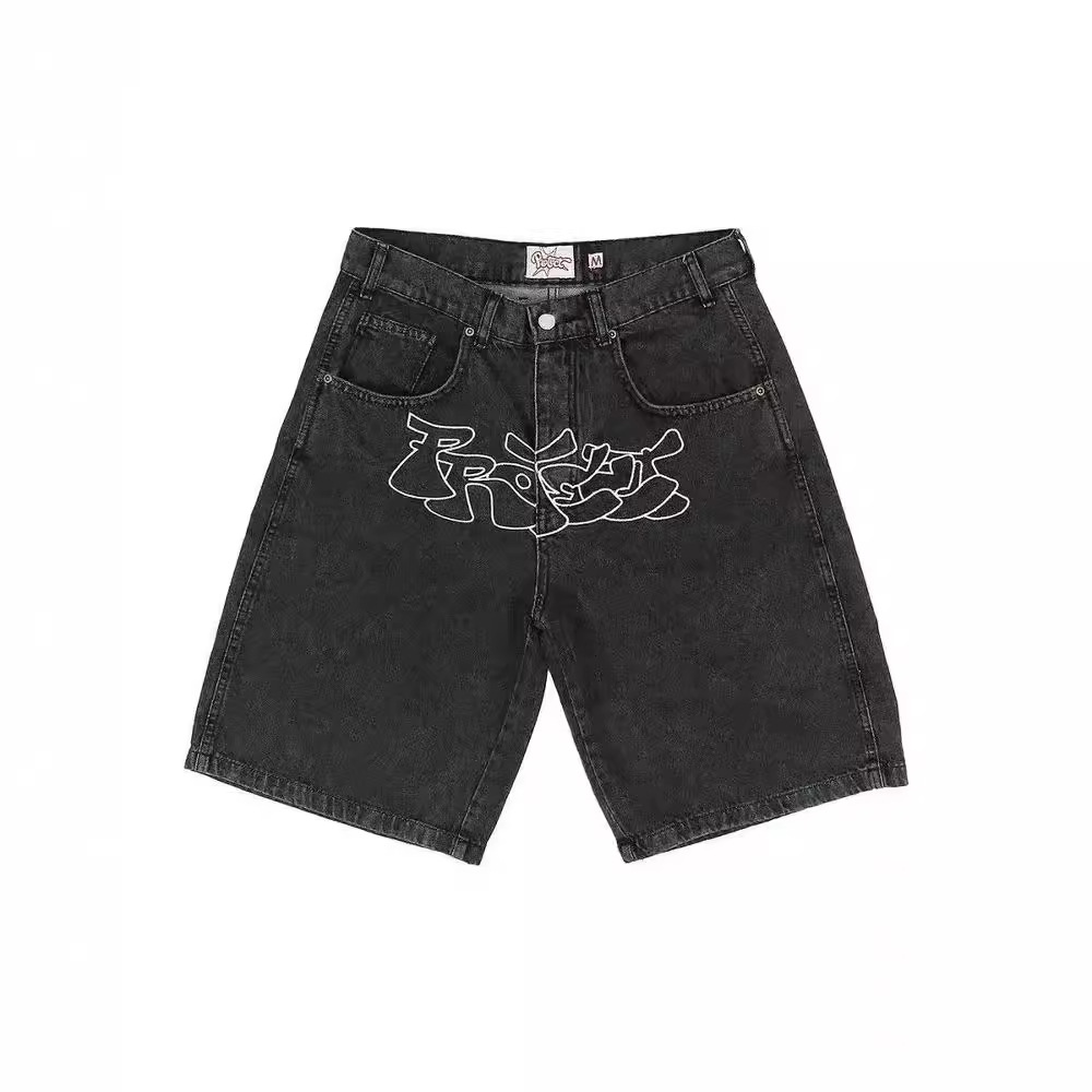 欧米のJNCOパターンカタツムリ刺繍Y2Kカジュアルパンツhiphopヒップホップゆるいスケートボード五分デニムショートパンツ