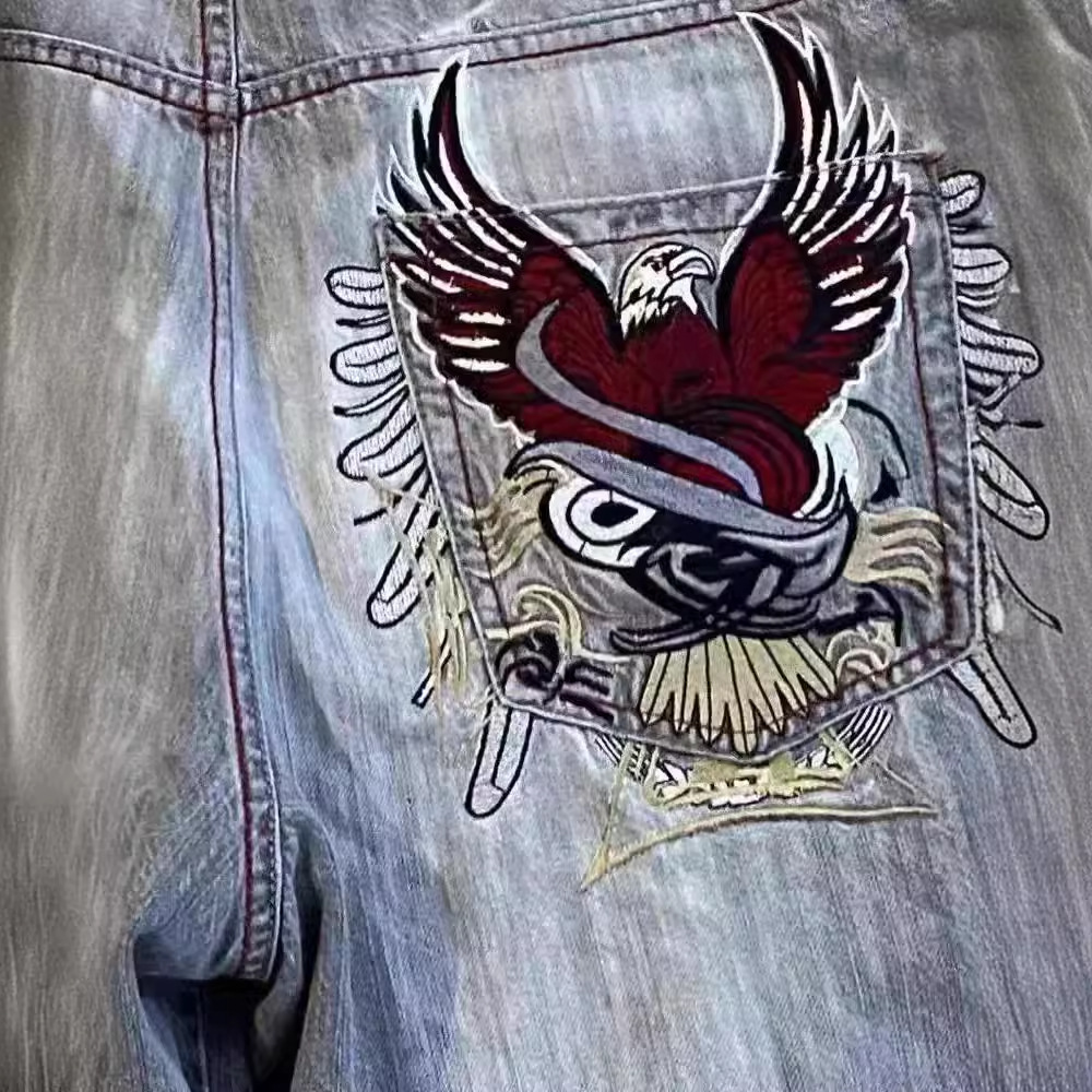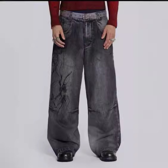 2024国境を越えた電気商のゆるいジーンズ男性のレトロな刺繍ヒップホップゴシックの街頭服装原宿ジーンズ
