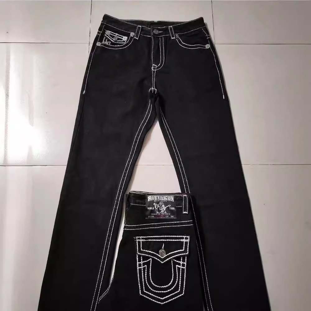 アメリカの潮牌Trueジーパン男性の宗教大仏信仰の大きいサイズの太線のまっすぐな筒のカジュアルな高い街のジーパン