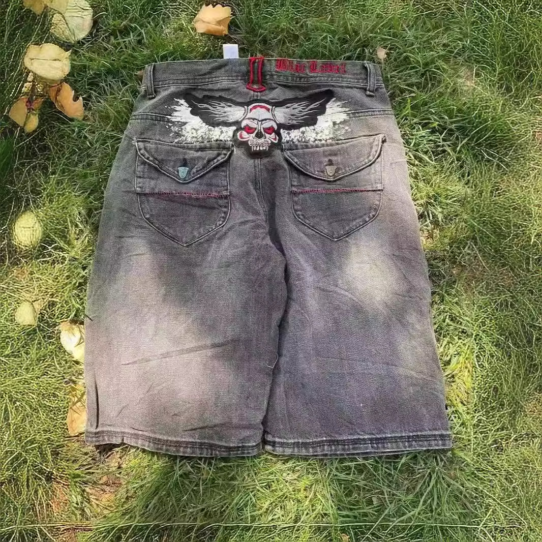 国境を越えた電気商アメリカ頭蓋刺繍レトロゆるいカジュアル夏の街頭ファッションY2Kカウボーイパンツ原宿