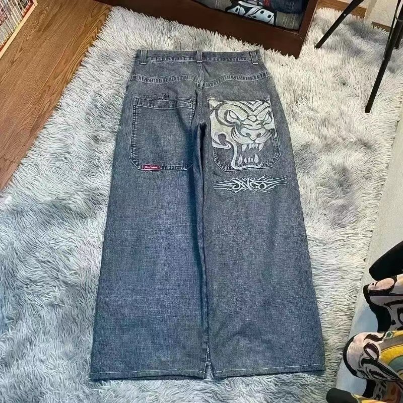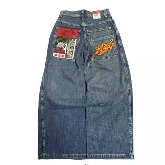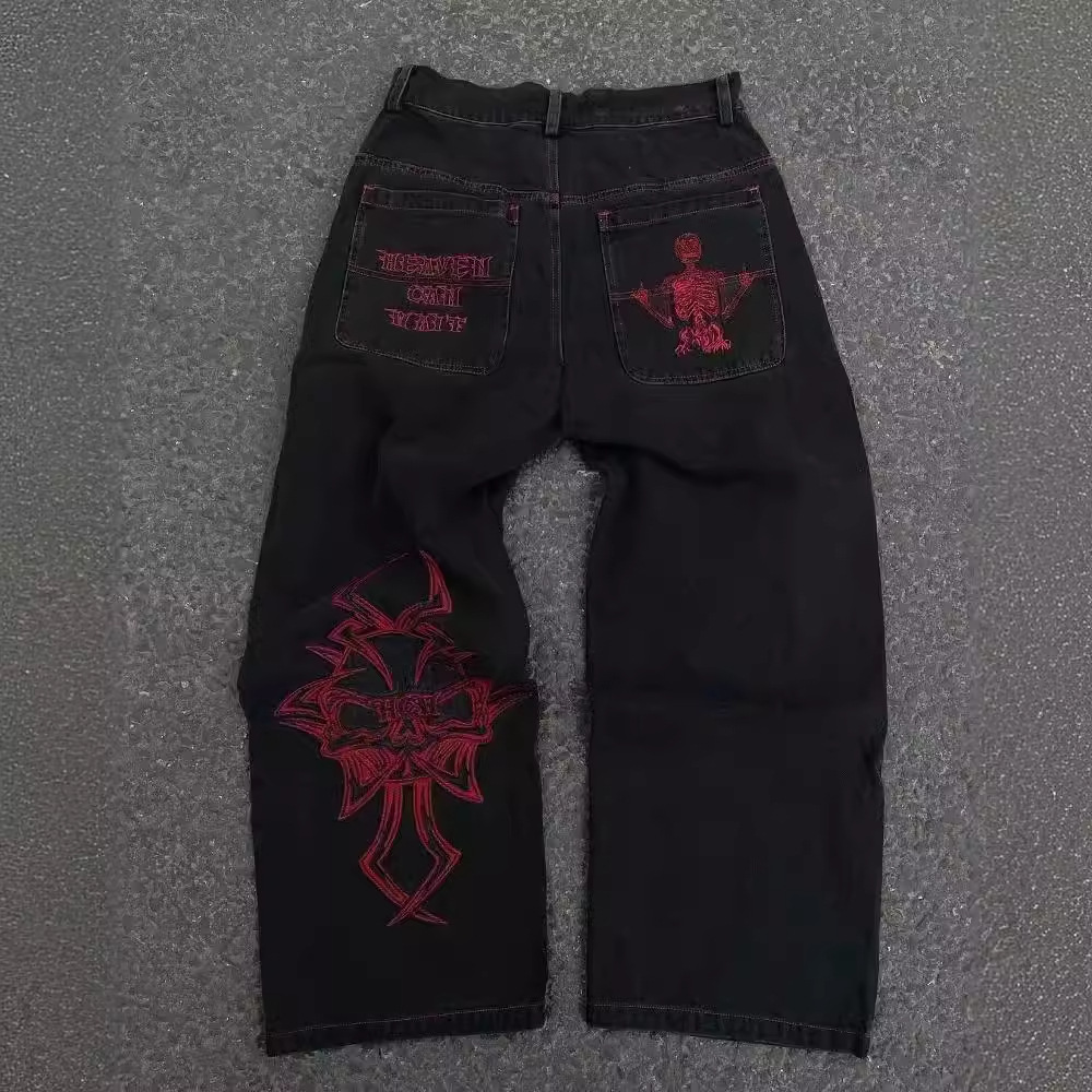 国境を越えた電気商のゆるいジーンズ男性のレトロな刺繍ヒップホップゴシックの街頭服の原宿男性カジュアルパンツ