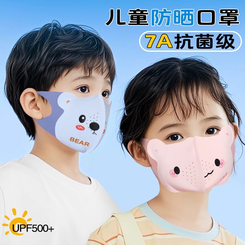 漫画熊7a抗菌学生児童日焼け止めマスク屋外紫外線防止3d氷糸冷感肌マスク
