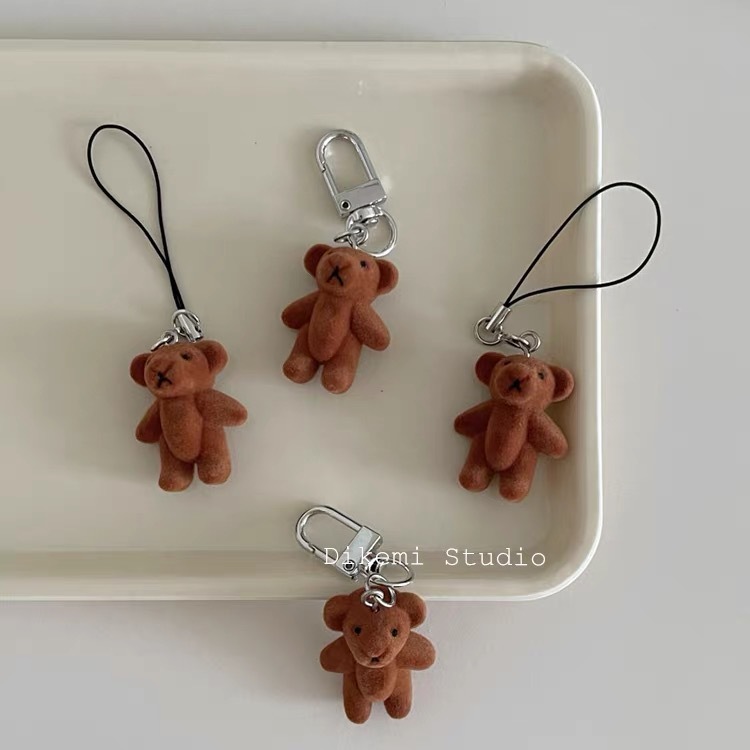 チョコレート色のシュークリームの癒しソフト萌え植毛熊携帯ストラップ