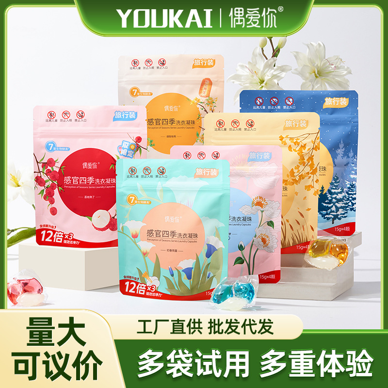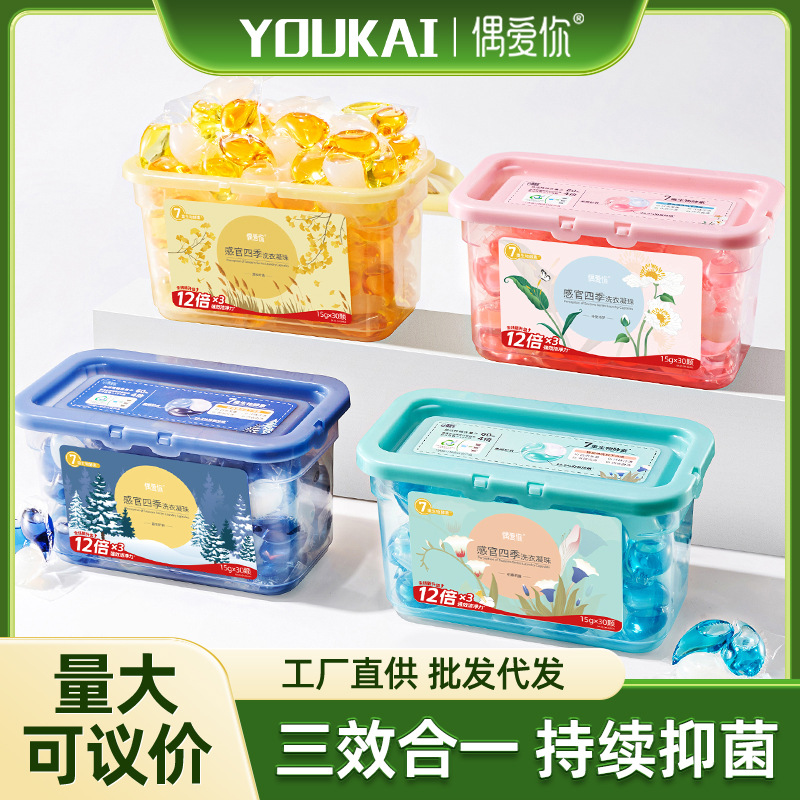 私はあなたの感覚を愛しています。四季の洗濯凝縮ビーズは穏やかに香りを残します。15g * 30個の2箱の通用凝縮ビーズ卸売りです。