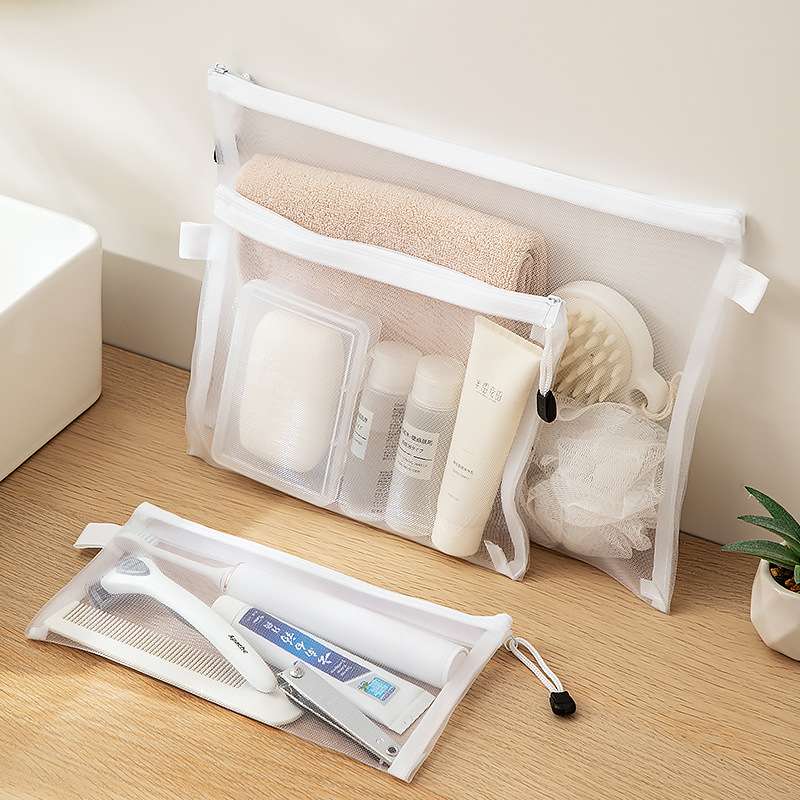赤い本は透明なナイロンのネットの糸の化粧袋を推薦して携帯旅行の洗面器の化粧品の収納袋を携帯します。