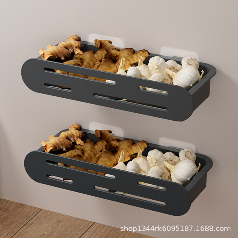 台所の棚の壁にネギを入れて、ニンニクを入れて、壁掛け調味料を収納します。