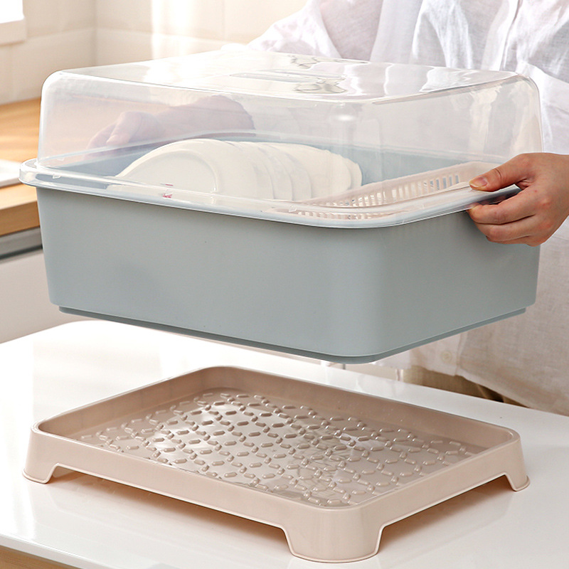 食器や箸を入れる収納ボックスには、蓋付きの水切り付き家庭用キッチンの小さな食器棚があります。