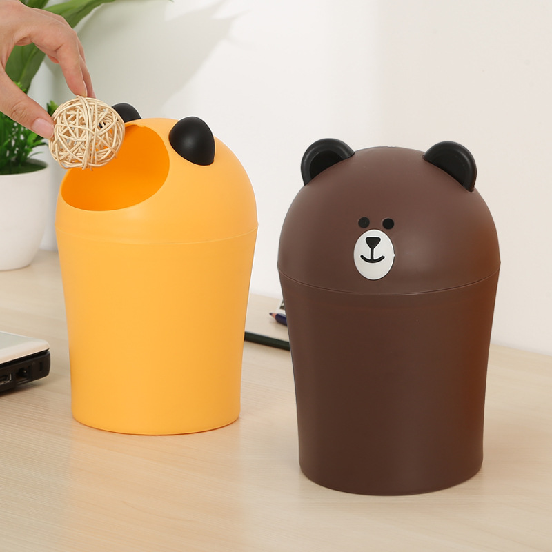 小さなゴミ箱の女性のデスクトップのミニかわいい蓋付き紙かごテーブルの上のアニメのアイデアかわいいベッドのリビングルームの家庭用