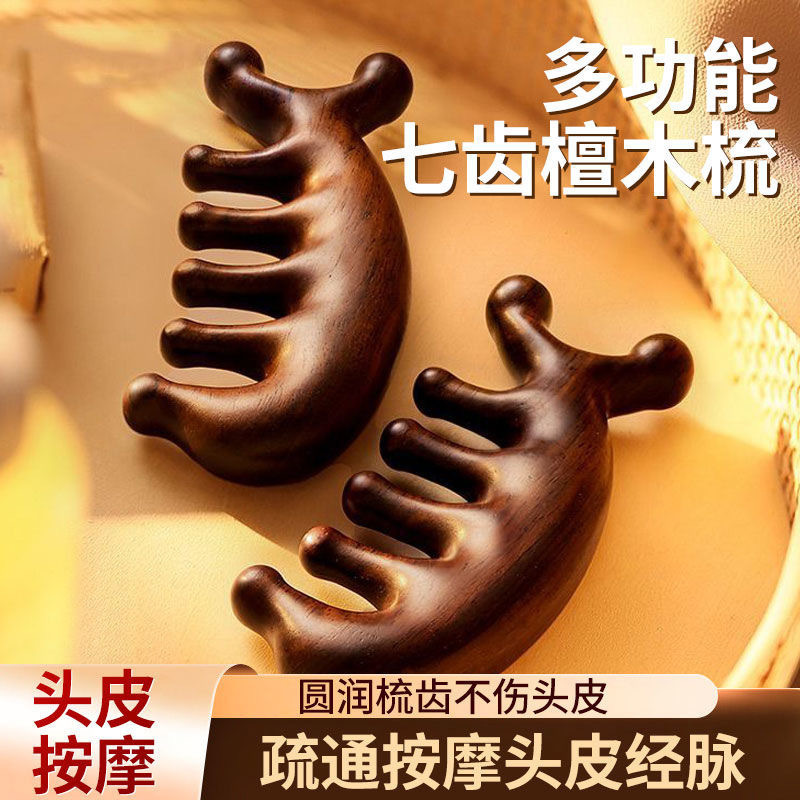 白檀経絡マッサージコーム、頭皮経絡コーム、頭部5本歯マッサージコーム、経絡を浚渫する家庭用スクレーピングマッサージ