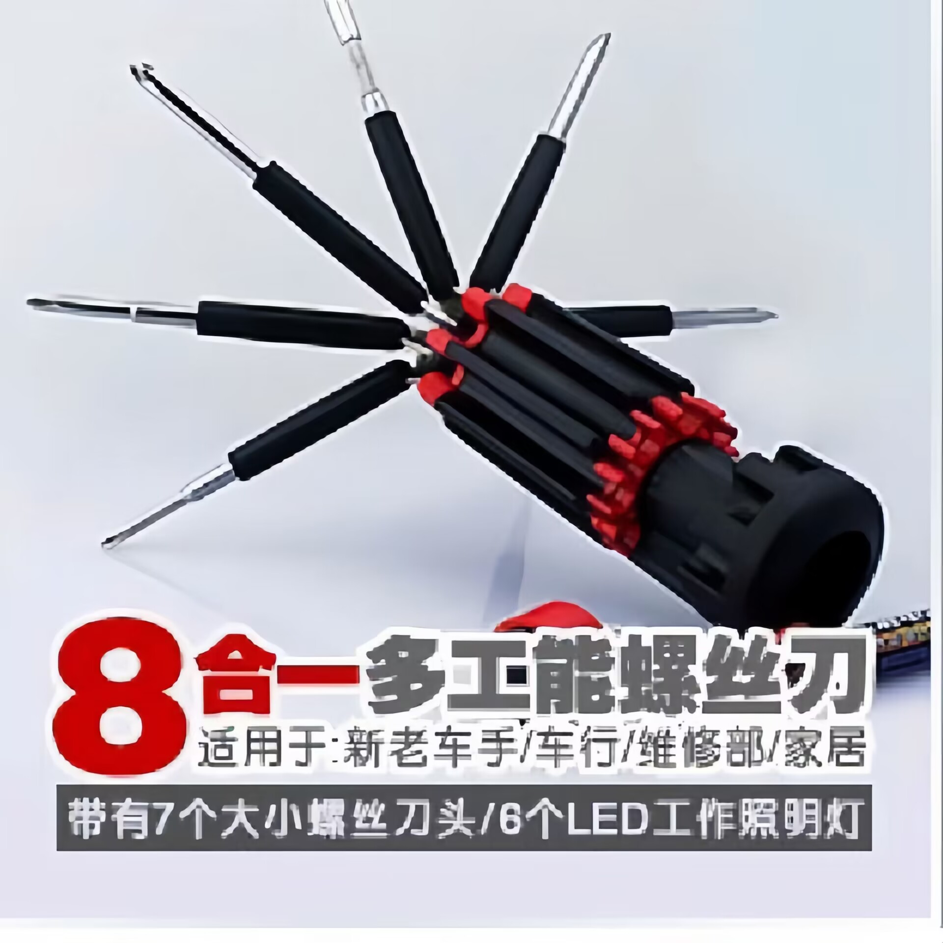 8 in 1灯付き開刀セット多機能手動ledランプ付きドライバーセット工具
