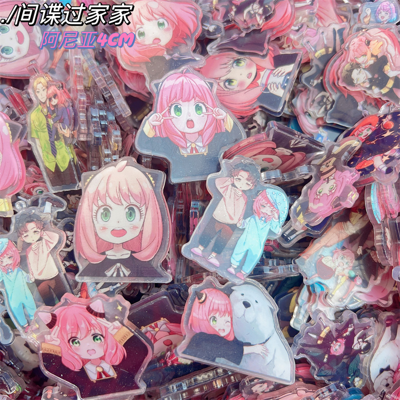 ディザトーンアクリル片アーニャ4cmダブル透手作りdiy材料パッチキーホルダークリップ部品卸売り