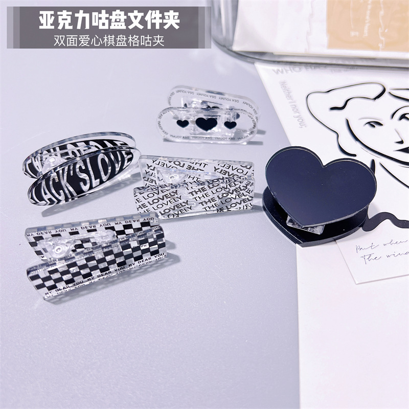 Ins棋盤格両面愛クリップシンプル英語アルファベットクリップppクリップアクリルファイル手帳クリップ