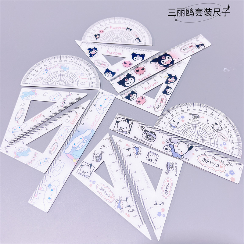 三麗鴎アクリル克洛米玉桂犬学生測定三角直尺円尺セット文房具測定尺