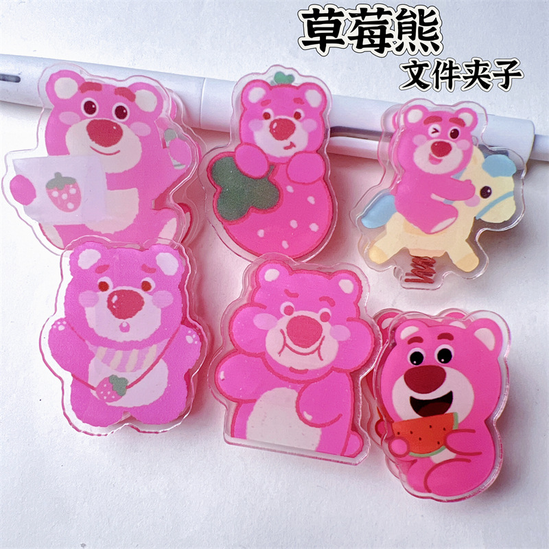 いちご熊アクリル漫画ppクリップかわいいカワイイ文房具固定資料試巻クリップ燕尾手帳クリップ