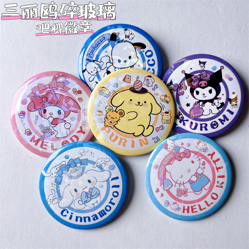 サンリオのアニメスターの周辺のかわいい女性のバーのブリキの底のレーザーはガラスの工芸のブローチのバッジを発射します。