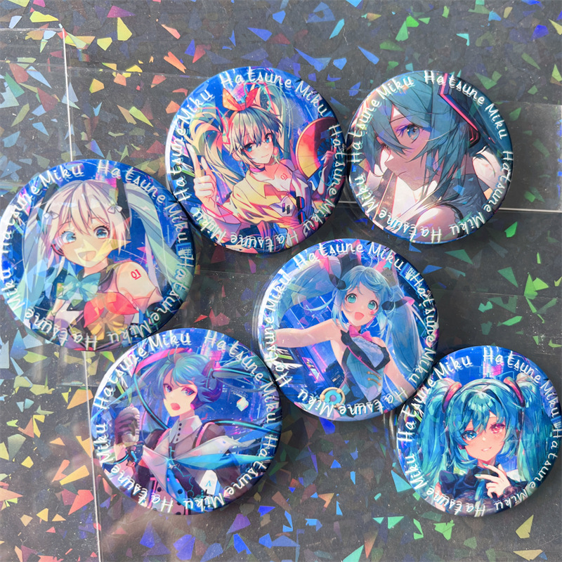 初音ミクのゲームの周辺のかわいい女性のバーのブリキの底のレーザーはガラスの工芸のブローチのバッジの装飾を発射します。