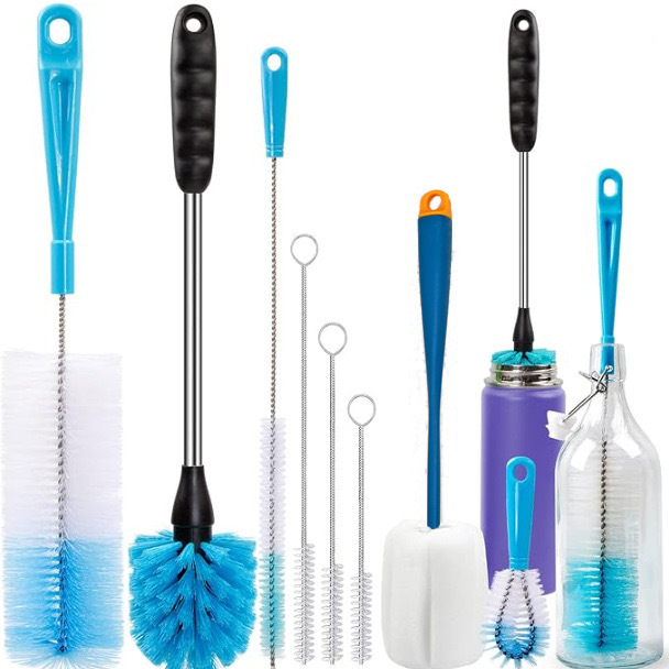 Amazonベストセラーの長柄カップブラシ、ボトルブラシ、長柄魔法瓶カップ洗浄ガラスティーカップブラシ、ボトルブラシセット