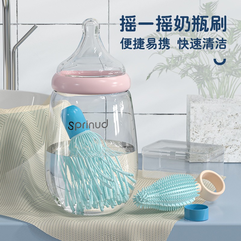 首を横に振って哺乳瓶ブラシ360度死角のない清潔な乳首ブラシセット携帯収納ケースシリコン洗浄哺乳瓶をすすぐ