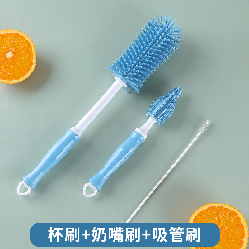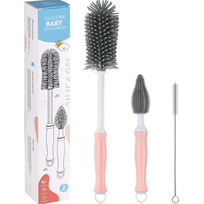 3 in 1 クリーニングブラシ シリコーンボトルブラシ クリーニングセット ベビーストロー 乳首ブラシ 360 ° ロングハンドル回転