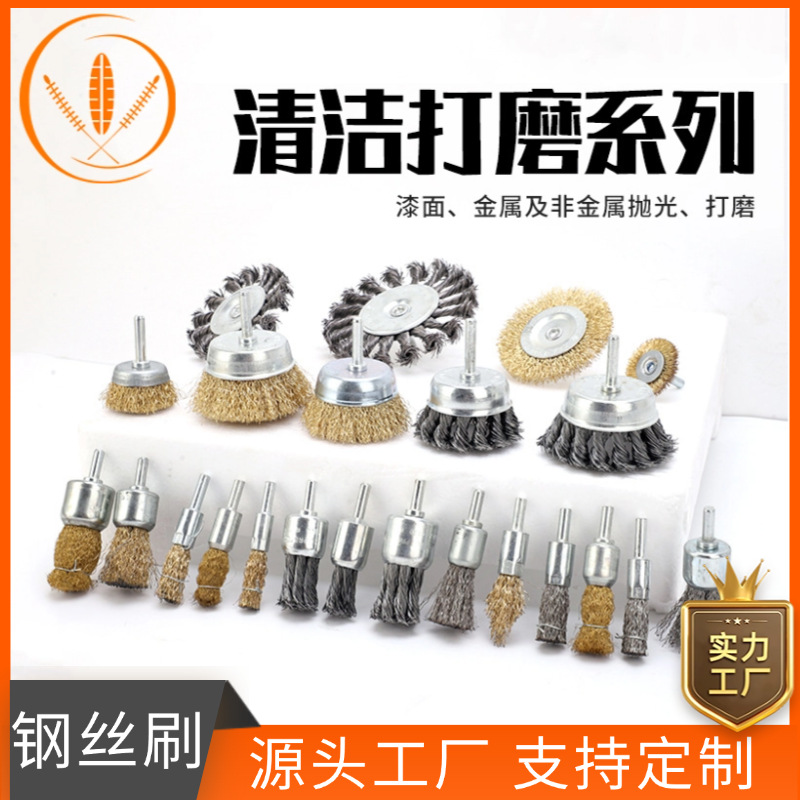 ワイヤーブラシ柄付きワイヤーブラシ鋼線研削ヘッドT型銅線ブラシねじり棒ボウルスチールホイール平6mm柄