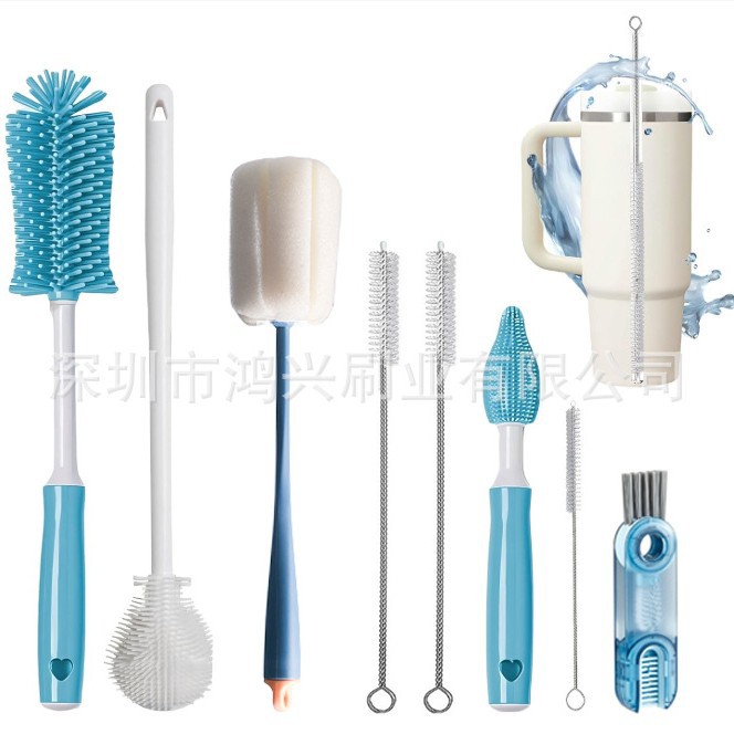 クロスボーダーベビーシリコーンボトルブラシ乳首ブラシウォーターボトルブラシカップ蓋クリーニングブラシカップブラシセット家庭用