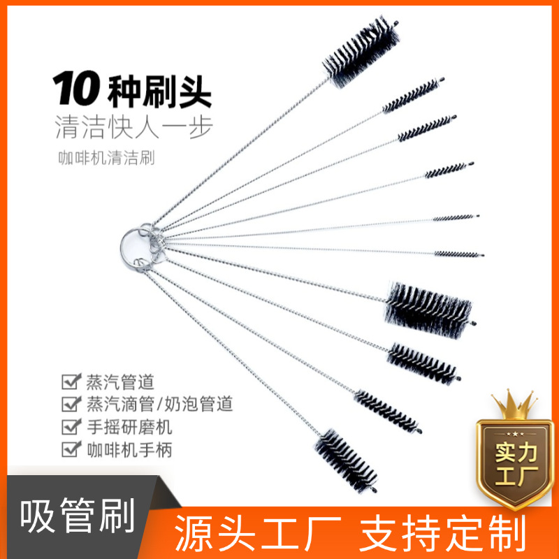 コーヒーマシン洗浄ブラシ蒸気管洗浄ブラシ試験管ブラシ滴管哺乳瓶ストロー洗浄ブラシナイロンブラシ