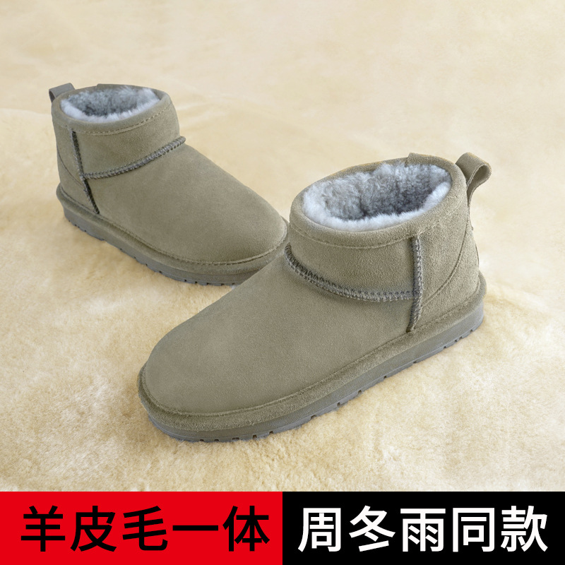 2024冬の短筒羊毛皮一体雪地靴女性は保温真皮ウール滑り止め東北綿靴を厚くした