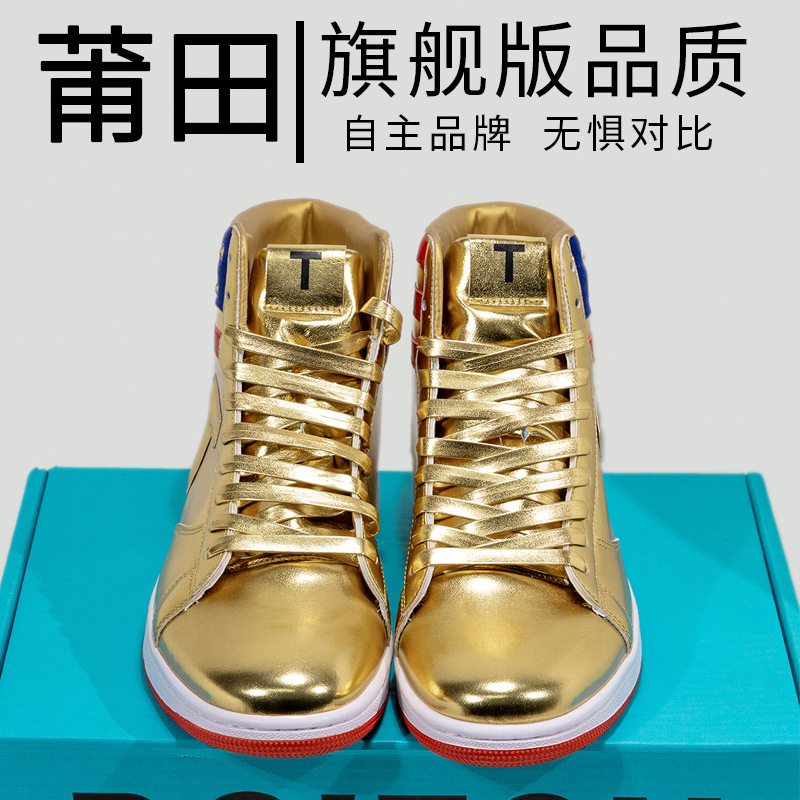 高組板靴男欧米ファッションカジュアル靴アメリカトランプは決して降伏しない金のアルファベット男靴