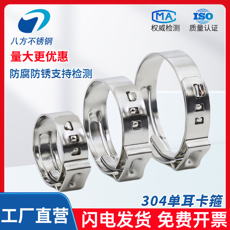 304ステンレス片耳無極クランプ強力喉フープクリップ水油管無耳締め付けバックル