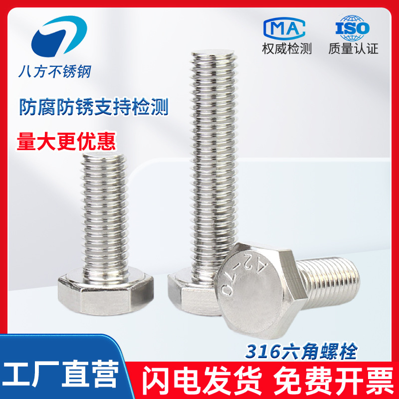 316L ステンレス鋼外側六角ボルト全ねじ六角頭ネジ M16M18M20M22M24 防錆