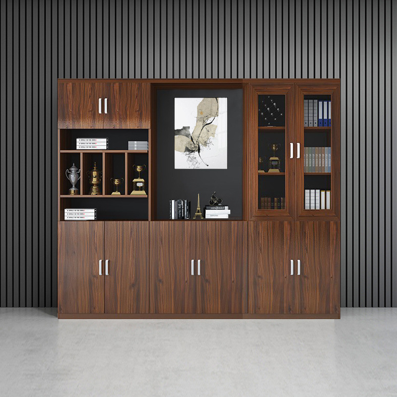ファイルキャビネット、データキャビネット、木製ボス本棚、パネルガラスファイルストレージ、オフィス背景キャビネット