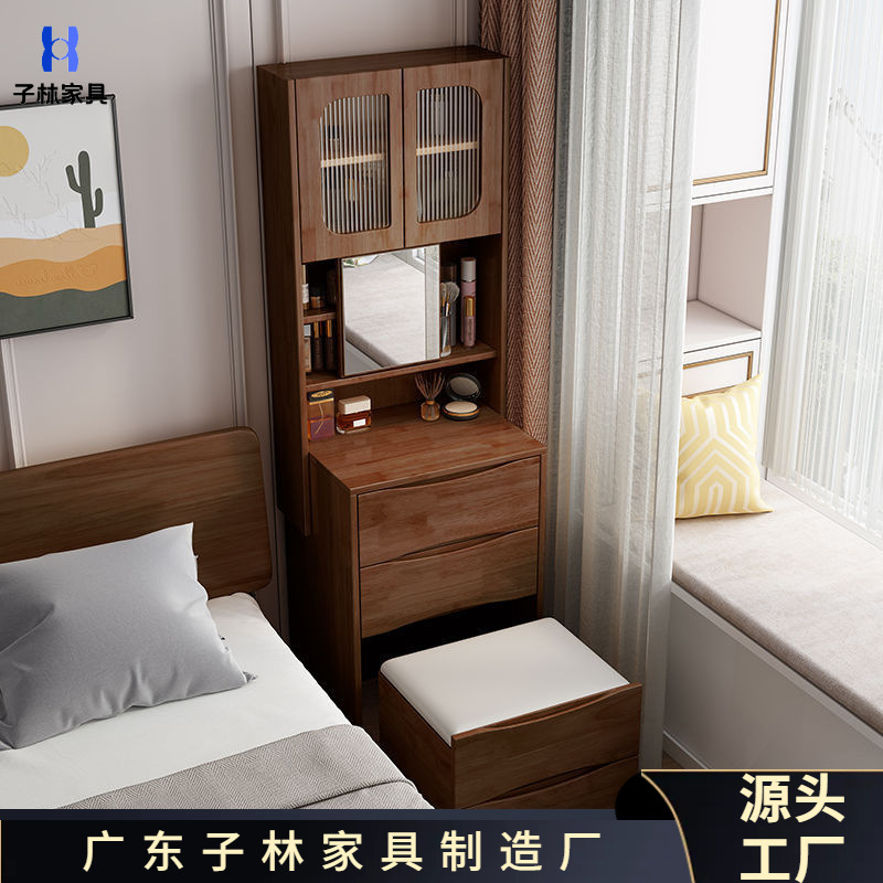 ベッドの頭の棚の一体の多機能の北欧の全実木の化粧台の小戸型の寝室のベッドの頭の化粧台は狭い棚を収納します。